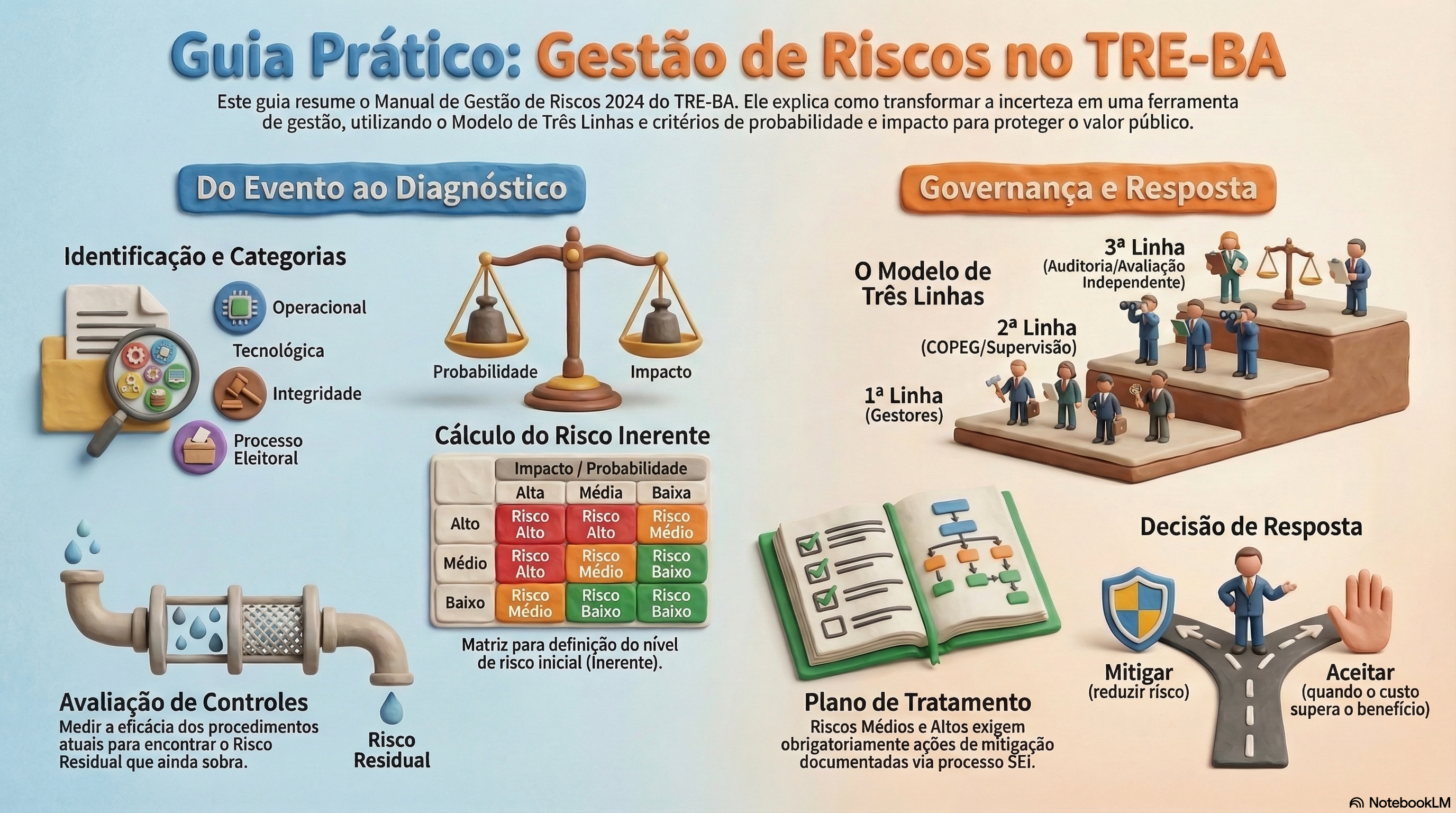O Tribunal Regional Eleitoral da Bahia (TRE-BA) instituiu formalmente seu Sistema de Gestão de Riscos (SGR) por meio da Resolução Administrativa nº 16/2018, tendo como objetivo fornecer garantia razoável ao atingimento dos objetivos institucionais — entre eles a missão de garantir a legitimidade do processo eleitoral e o livre exercício do direito de votar e ser votado.
